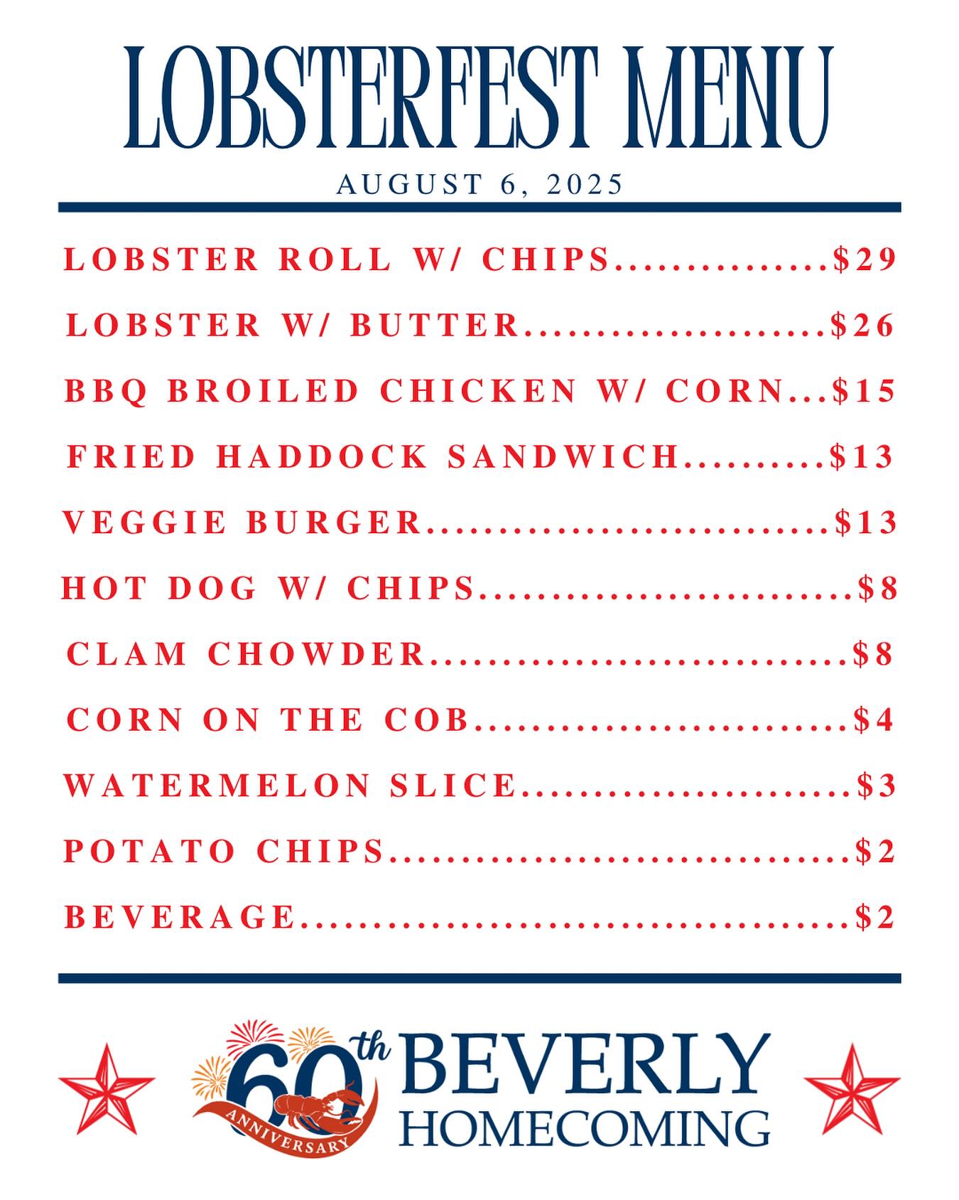 Make time for a traditional boiled lobster or lobster roll, chowder, or chicken, etc. and catch up with your Beverly friends and neighbors at Lynch Park. As you enjoy fresh lobster at picnic tables under the big tent, local bands will provide an oceanside soundtrack for your listening or dancing delight. Meanwhile, local businesses, elected officials and politicians, and nonprofit organizations will be set up around the park to share information – and usually some fun lawn games – with you.